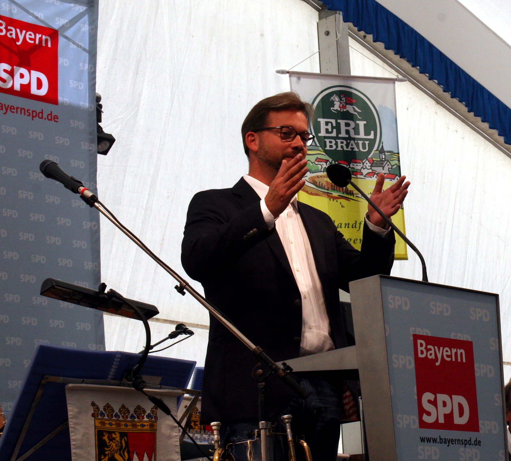 „Sozialdemokraten müssen sich von ihren Gegnern unterscheiden durch ihr Wissen von der gesellschaftlichen Entwicklung, durch den Realismus ihrer Politik, durch die Wahrhaftigkeit ihrer Argumente, durch ihren Mut und Leidenschaft im Kampf für das Recht der Unterdrückten, durch ihren Glauben an die Menschlichkeit und die Freiheit.“ Diesem Satz des Gründervaters der bayerischen SPD, Georg von Vollmar ist der Hauptredner des politischen Frühschoppens der SPD auf dem Bartholomämarkt in Aufhausen, Dr. Ralf Stegner, stellvertretender SPD- Parteivorsitzender und Landesvorsitzender in Schleswig- Holstein, mit einer fulminanten Rede voll und ganz gerecht geworden.