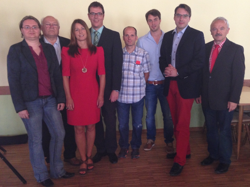 Von links: U. Hildebrand, E. Krüger, P. Lutz, R. Hummel, H. Wittmann, S. Schmidmeier, S. Koch, H. DechantDie SPD im Landkreis Regensburg hat am Samstag, 5. Juli, die Vorstandschaft neu gewählt. Der bisherige Vorsitzende, Rainer Hummel aus Kallmünz, wurde im Amt bestätigt. Ebenfalls bestätigt wurde die bisherige stellvertretende Vorsitzende Ursula Hildebrand aus Donaustauf. Neu in der Riege der Stellvertreter sind Petra Lutz aus Hemau und Sebastian Koch aus Wenzenbach.
